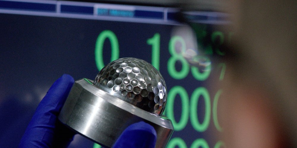 The designs are then sent to the Titleist Tooling team, which is tasked with making the dimple molding cavities. That process starts inside an unmarked building just a short drive from Titleist HQ. It’s there, amid flying sparks and the smell of burning metal, where Titleist manufactures every single one the golf ball mold cavities that are used in the process that forms the cast Urethane Elastomer cover and dimple patterns for Pro V1 and Pro V1x, as well any prototypes that R&D designs for those models. The mold cavities for every other Titleist golf ball are also made here.