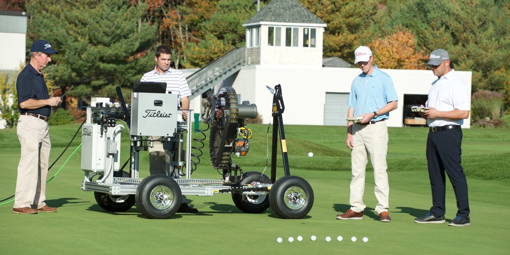 “Outside” begins at Titleist’s Manchester Lane Test Facility, just down the road in Acushnet, Mass., as well as the Titleist Performance Institute in Oceanside, Calif., where robotic golfers test each prototype, providing exacting measurements that even the best swings in the world can’t duplicate. In these tests, the variables related to how a golf ball is struck are eliminated, providing results that truly identify the relative performance of various products. Pass those trials, if you’re a prototype, and you’re likely headed for a white box, ready for human testing.