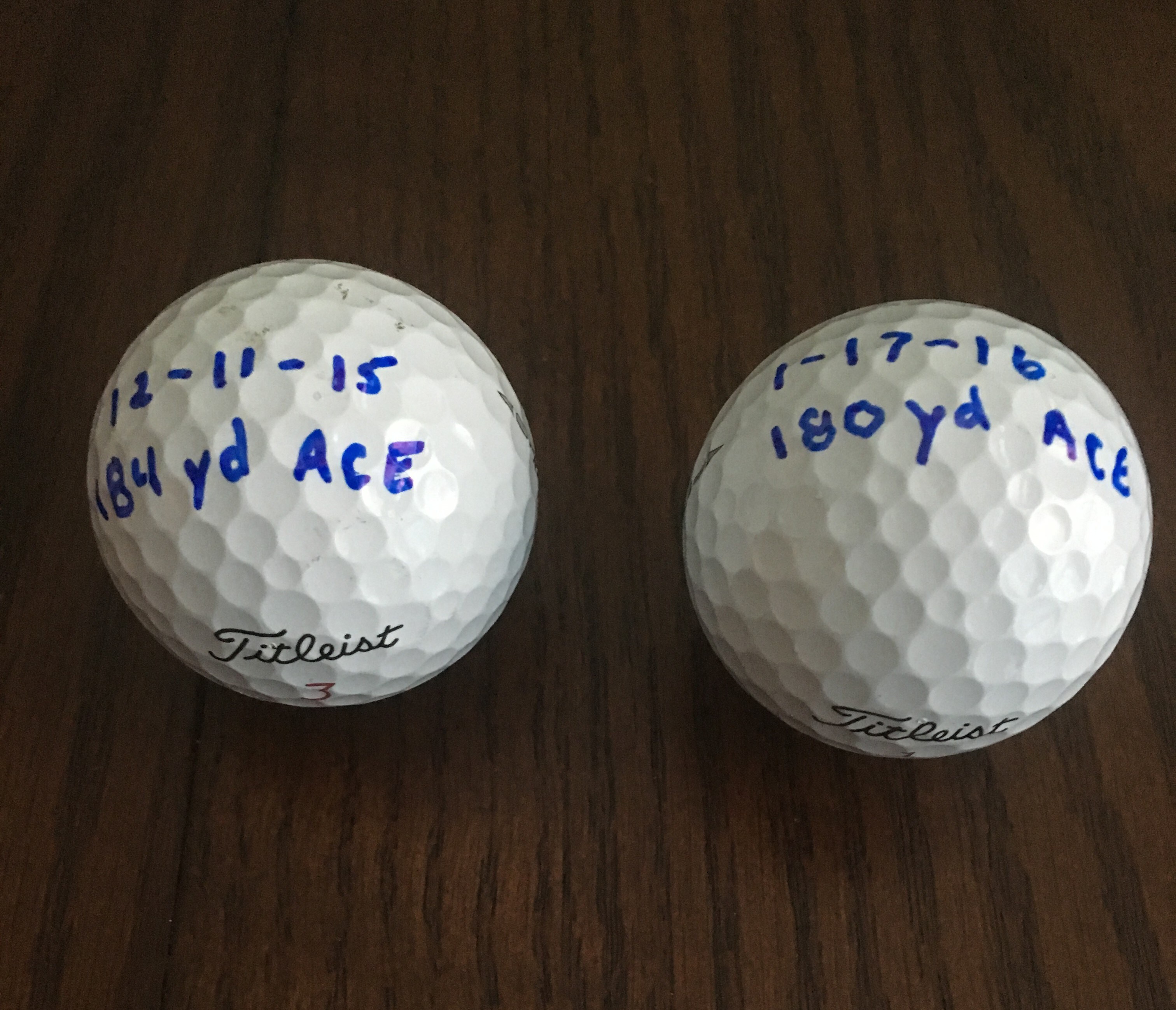 26 years I waited for my first hole in one. It happened on Dec 11 2015 from 184 yards. I was playing a Pro v1x. It also happened again on Jan 17th 2016 a little over a month later from 180 yards. I struggled on the front nine with a 2 piece ball and switched to a Prov1x on the back 9 and rattled off 4 pars, an ace, and shot even par three out the last four holes for a 1 under on the back nine and a 78 total. It was a great day! Pro V1x is my ball!