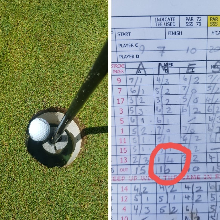 Ondle Golf Club, England. It was a beautiful Saturday nice and sunny with light brease. I had a good start of the round but had few grease holes after. We arrived to the 9th hole. 182 yards bit downhill with little wind of the right. Pin was on the front of the green. 172 yards to front. Just picked up my 7 iron which should be the right club for that distance and it was. Hit nice shot straight on the flag. The ball landed on the green took one bounce and roll in the hole. As I seen it going in the hole just trow the club in the air a and celebrate. It's shame that in this situation about this pandemic we couldn't even do high fives. But still a special moment I will remember for long time.