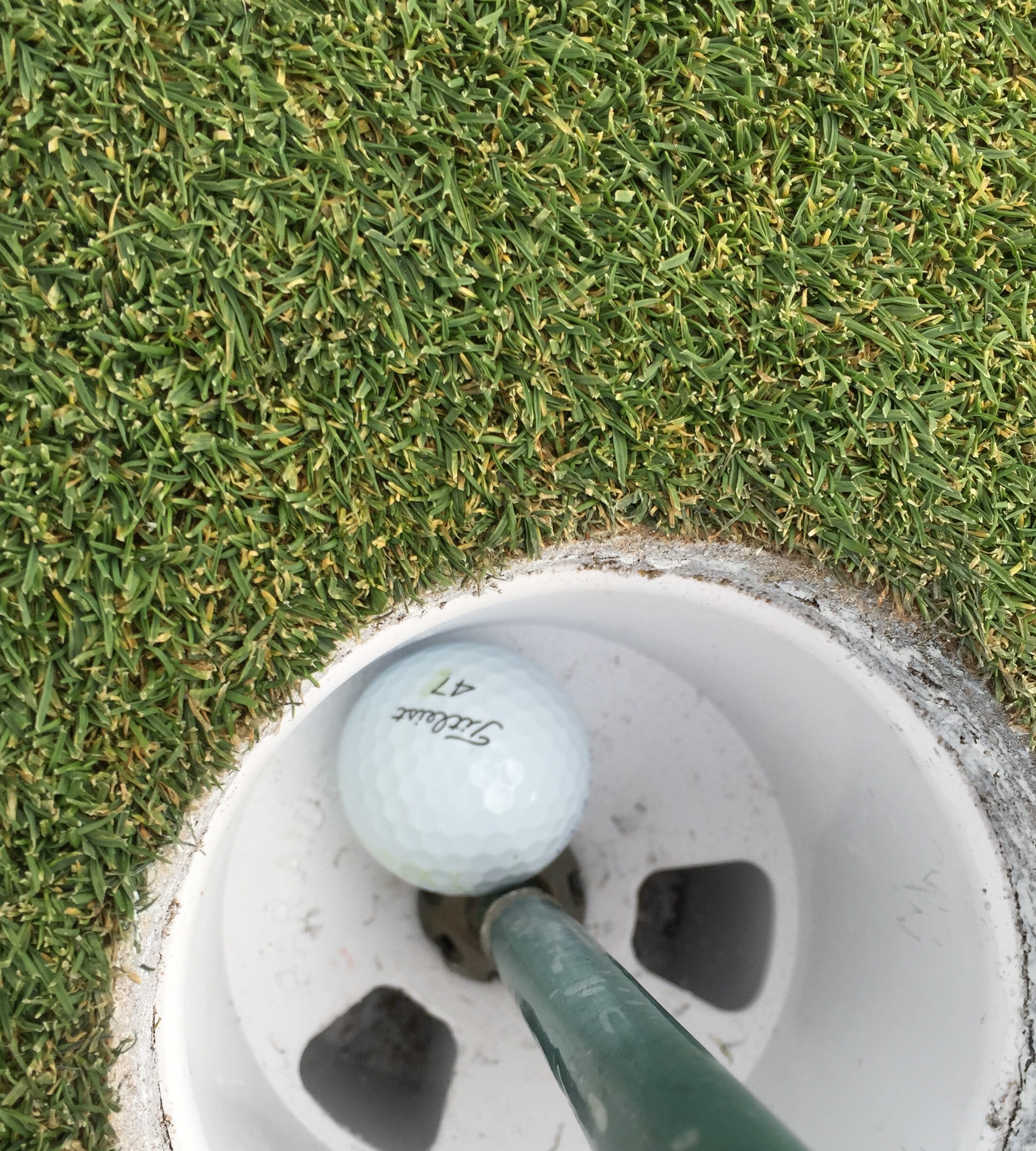 My first hole-in-one on my home course came in a team scramble using a 6 hybrid club on the 183 yard par 3 6th hole.A perfect high fade to the green and a 30 foot tracking roll until it disappeared into the hole. My ball...a Titleist ProV1 numbered 47, the year of my birth and my name.