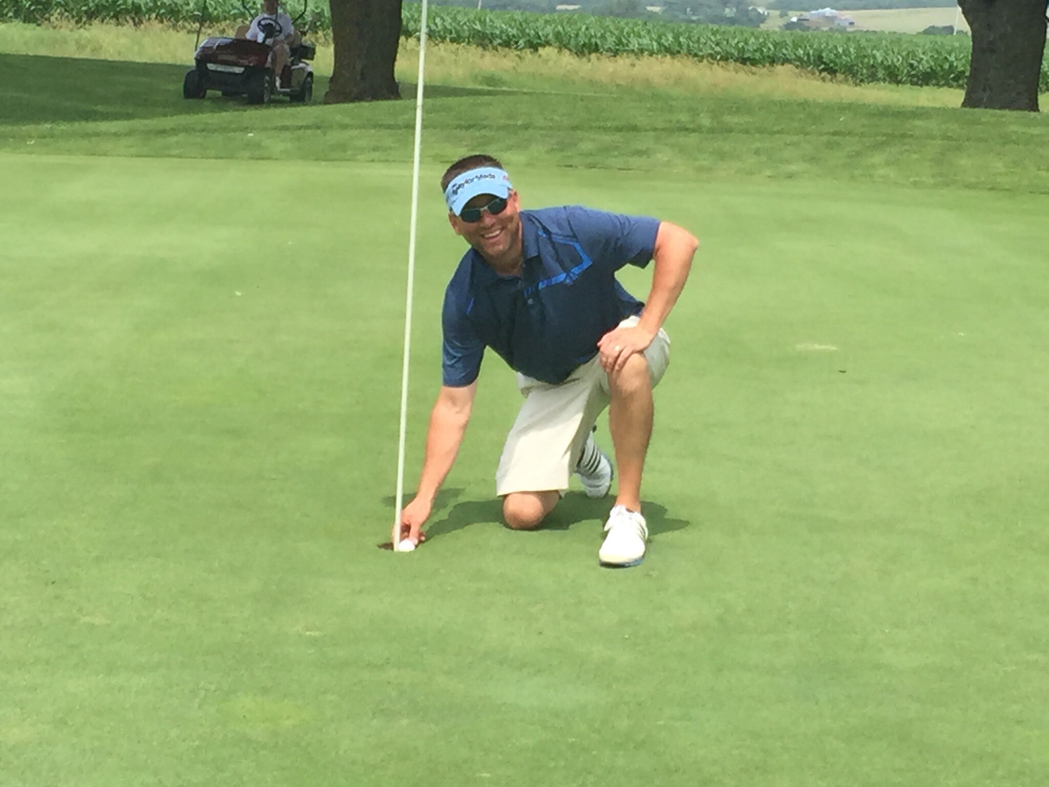 I grew up playing golf at Tarkio Golf Club in Tarkio, Missouri. For as long as I can remember I have been playing in their annual Father's Day Tournament. Playing with my buddy Nate Salmond and his dad Ed and brother Vince I sunk a 5 iron from 176 on the par 3 6th hole. The spotter on the hole for the hole in one prize of $1,000.00 was my former high school football coach Dave Palmeiro. He has been spotting the 6th hole for the hole in one prize for many years and said he thought he would die before he saw one. This was my first hole in one and I could not have picked a better time to hit one. Great day! And I did it with a Titleist ProV1!