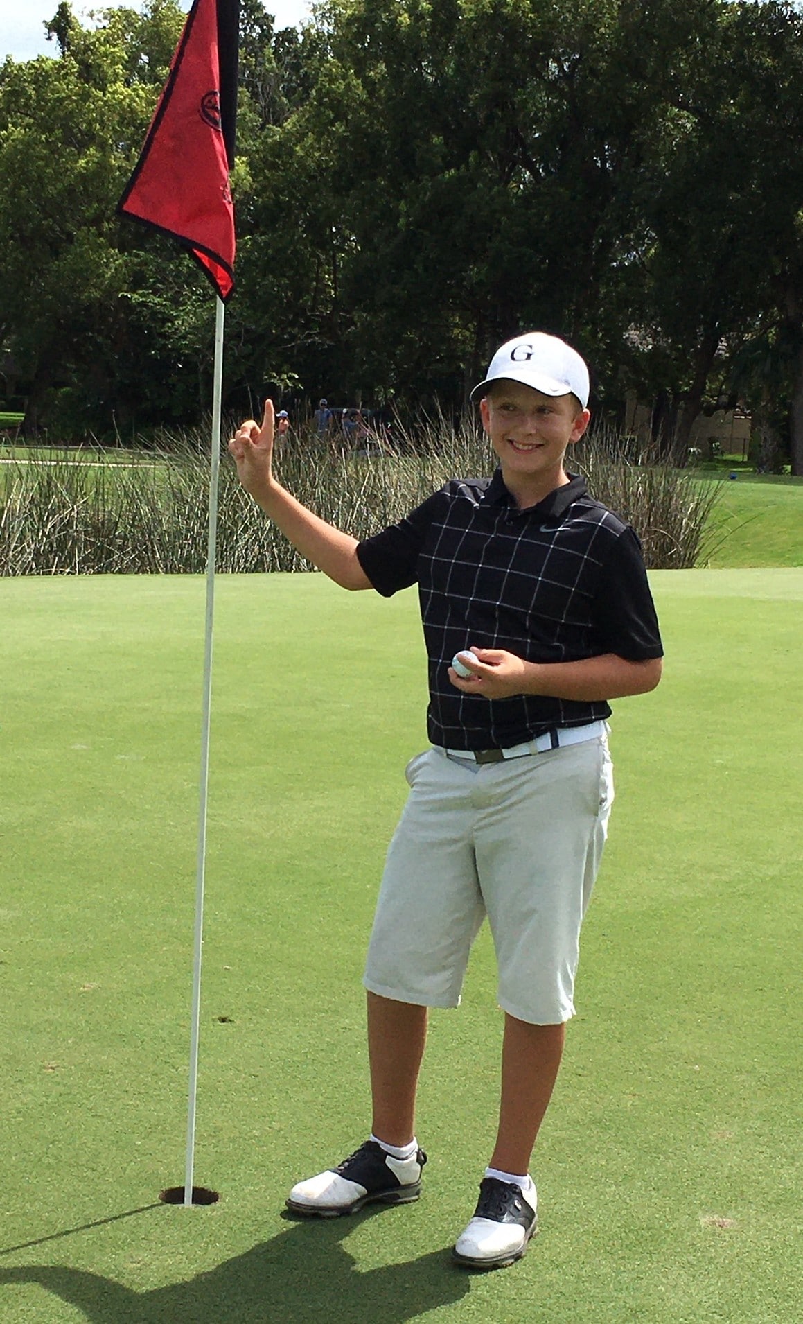 Playing in a U.S. Kids Golf Tournament - 12 Year Old Division of the Orlando Tour - at Dubsdread Golf Course, I had my first career Hole-in-One. Using a 7-Iron on the 15th tee, I struck my trustworthy Pro V1X to the front of the green with a front-middle hole location. The ball took one short bounce and spun sideways into the hole. Doing this in a competitive tournament was just icing on the cake. Thank you Titleist for consistent results that give me confidence going for the pin!