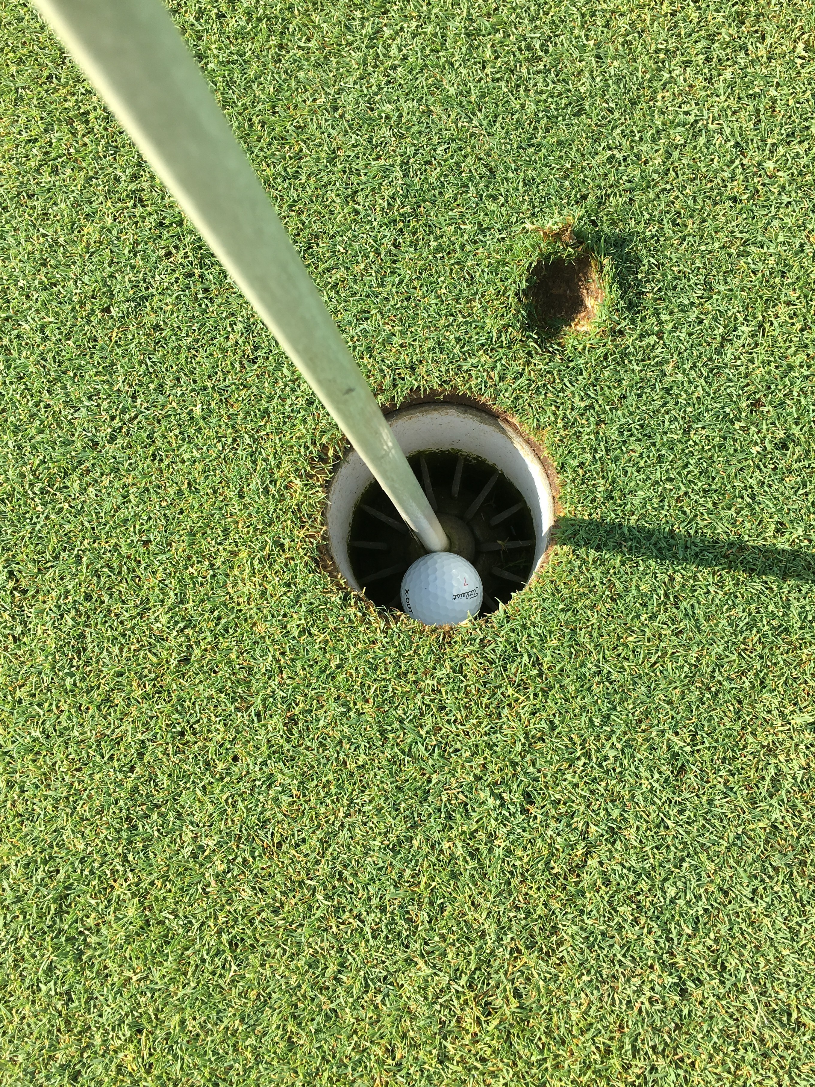 July 13th, 2016. Hole number one at #BrightLeafGolfClub in Harrodsburg, KY. Hit nice 8 iron into the wind, hole was playing around 158yards. ProV1 hit right by hole and jumped right in !