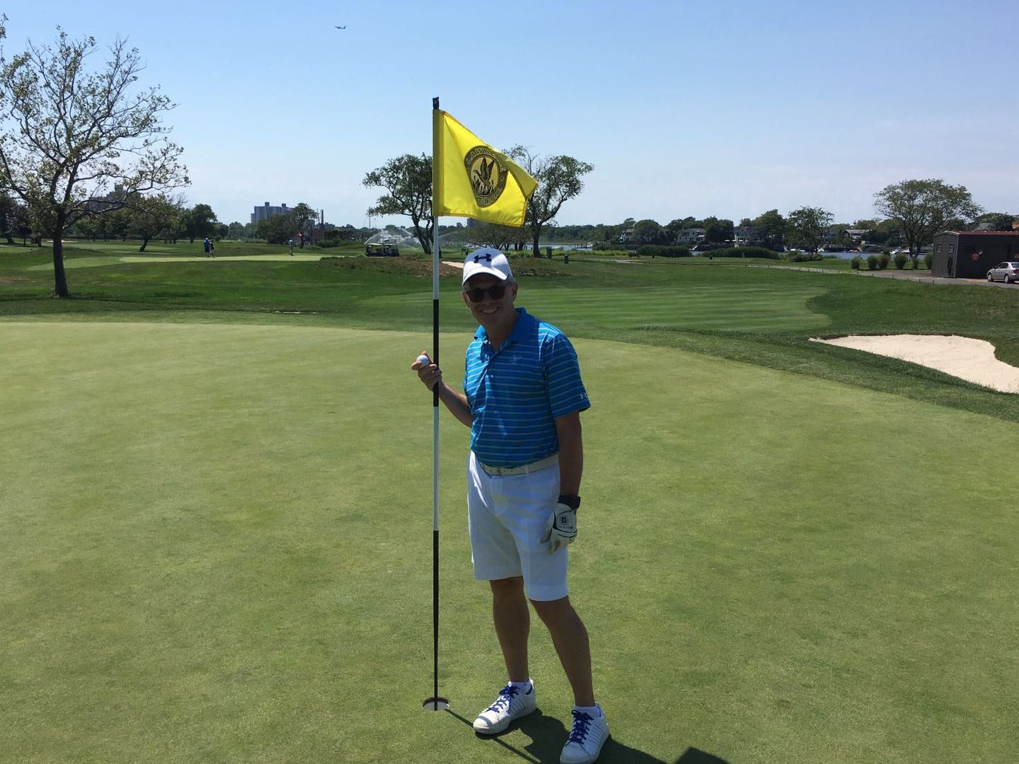 Perfect Day, wind in my face , playing with 2 good friends , 149 yards to the pin, protected by an elevated trap, so the shot was blind. Hit the ball perfectly( finally finished my swing) and saw the balls flight path draw to the hole. It looked good, but we all said it's either in the hole or ran right by it. We get to the green looking for the ball and no ball too be found, we take a peak in the hole and , we jump for joy , HOE IN ONE. Such a great feeling