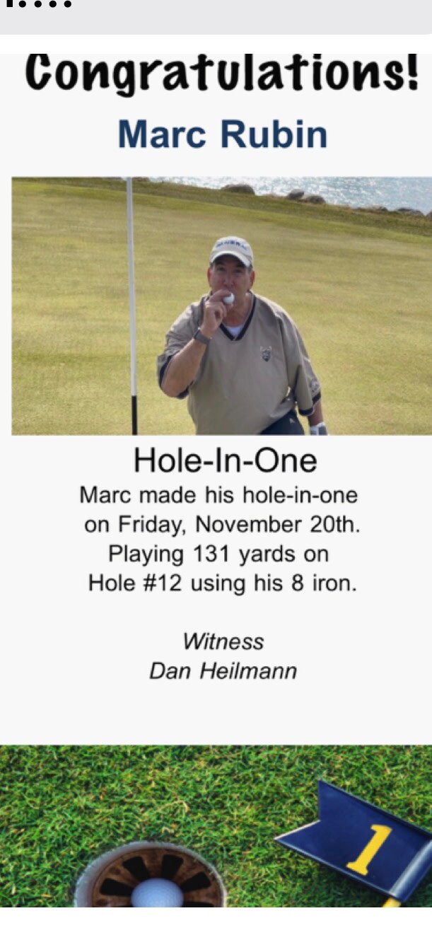 The hole #12 at Polo Fields is the Featured Par #3 131 yards I hit a high 8 iron that seemed to stay up forever the guys in my foresome said its right at it! And it was one bounce the ball tracked about 10 yards and rolled right in!