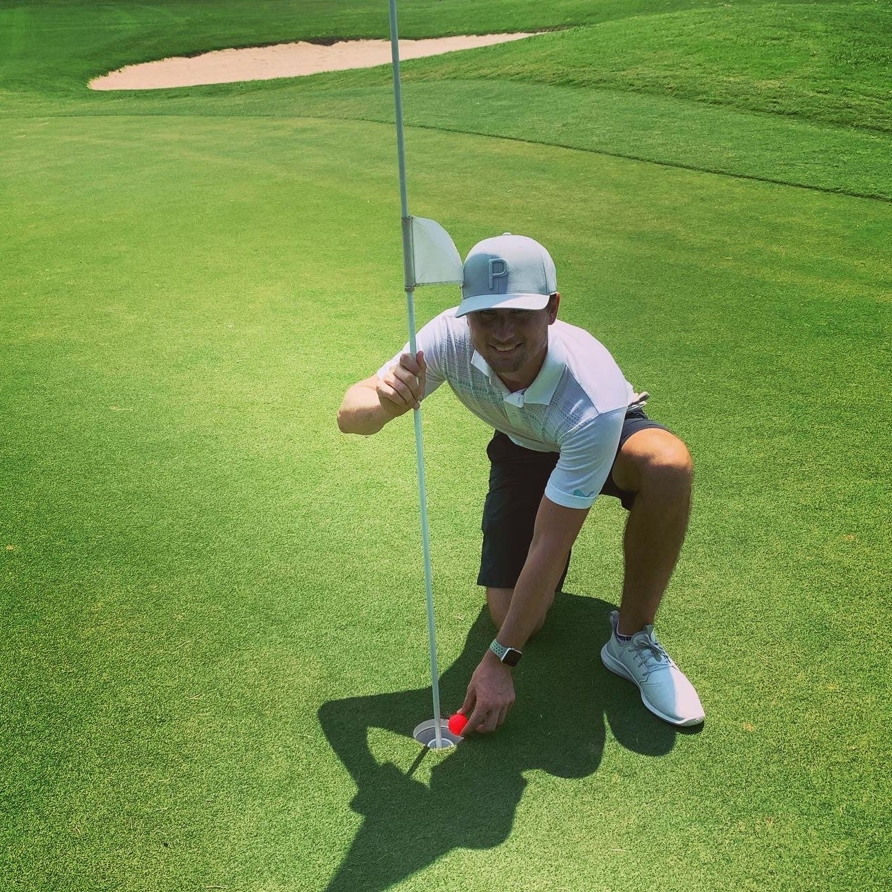 Pulled up to the green and saw the matte red shining in the sun, just sticking out the hole. What a feeling!!