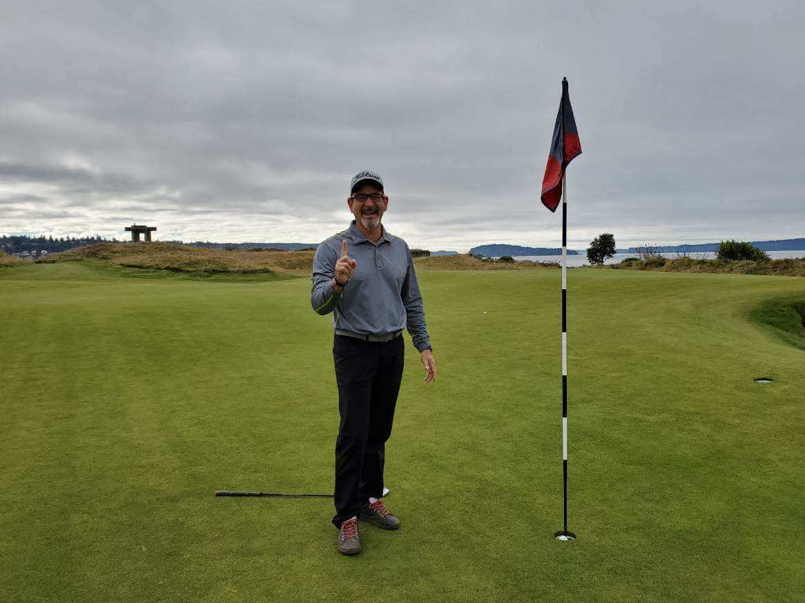 I made a hole in one on the 17th all at Chambers Bay par 346 yards my first time I ever played Chambers Bay 43 years of playing golf I finally made all in one it was a really happy day for me
