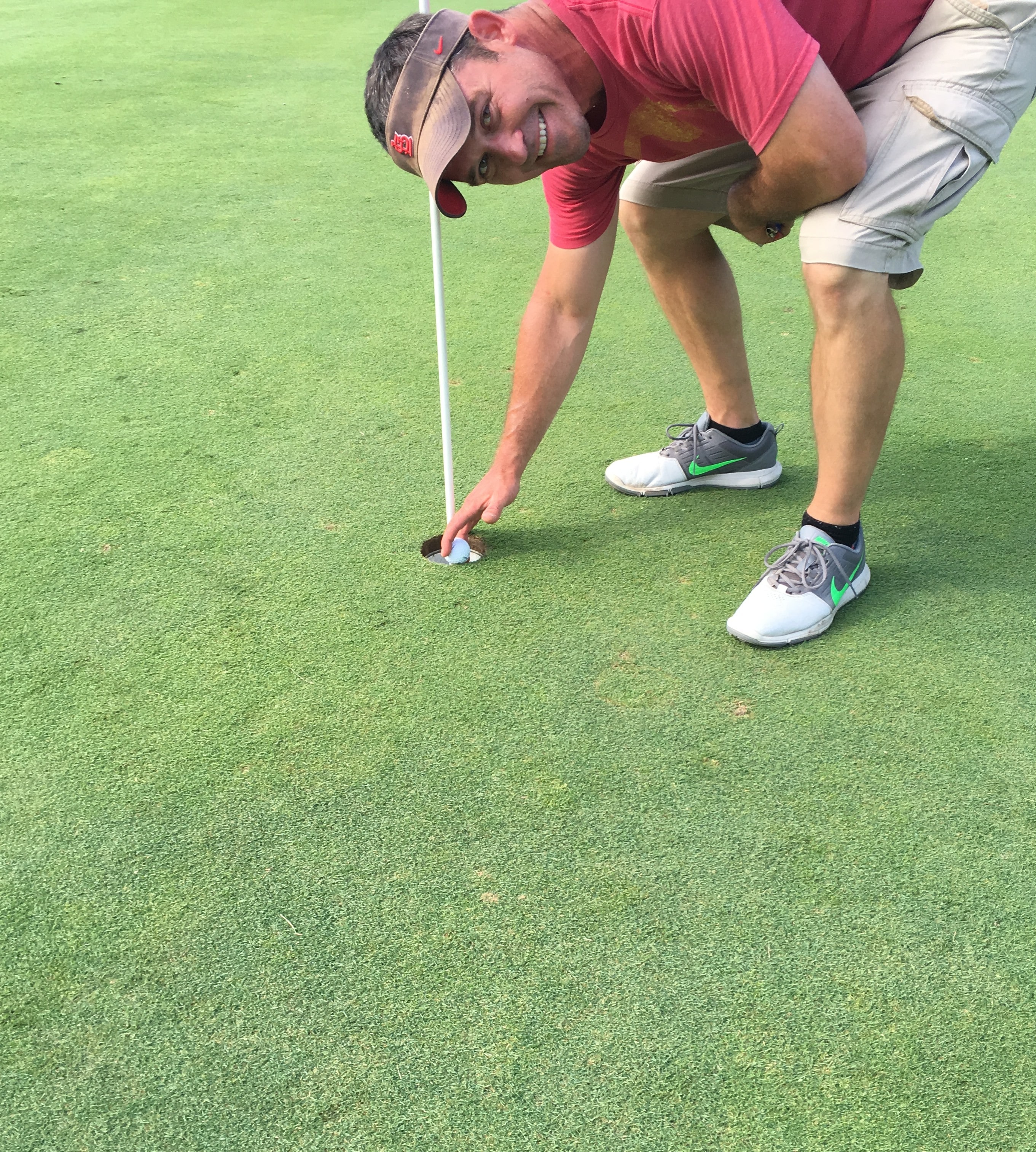 Its was Saturday July 9th 2016. It was a warm day at Bunn golf course in Springfield IL. I was with my friend Mike Ray playing around of golf. The play was slow on the front so we eventually paired up with a gentleman by the name of Dan. We had played 5, 6, and 7 together when arrived at #8. Dan was first off the tee, then it was my turn. The hole was playing 122 yards from the blues. The pin was front left with a bunker 10 yards from the pin. I aligned my shot took a nice swing and up it went. Mike says instantly "that looks good." I was a little less confident and said, "I think it's short." I look away and Mike says, "I think its good." I turn back in enough time to see it hit the green bounce once and roll in the hole. In disbelief I turn back and both Dan and Mike say it's in the hole. At that point I celebrated. I have played for over 30 years and finally hit the coveted hole-in-one. On a side note I almost broke Mike's nose in celebration.