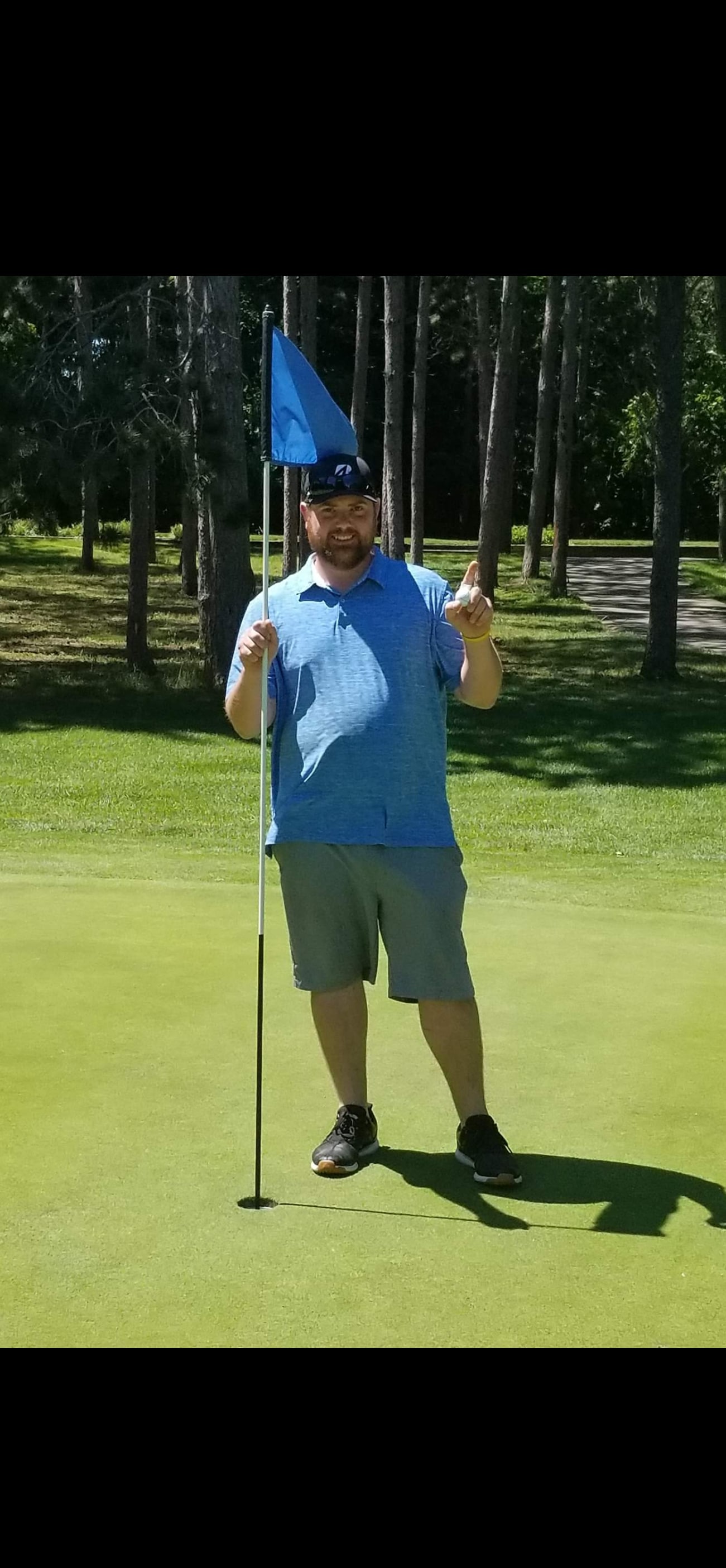 It was a beautiful day. My buddy just hit an 8 iron long. I switched to a 9 and hit a great ball took a couple hopes and stoped. We couldn't tell until we cleared the bunker and sure enough i had done it.