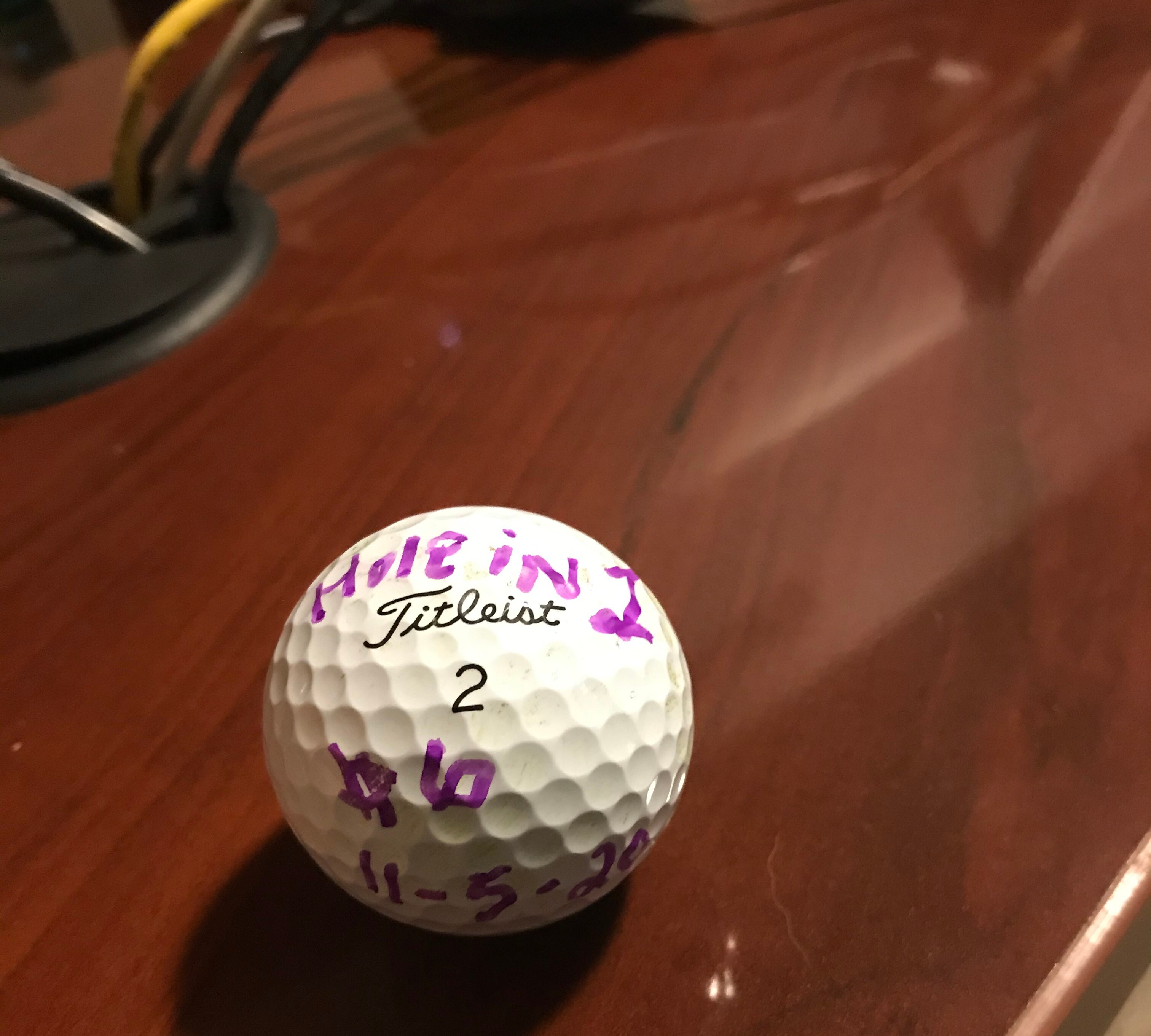 First hole in 1 came yesterday Nov 5th. First time golfing in Nov and was very fortunate to get my first hole-in-one. Found a Pro V in the woods and on my second hole became a Titleist golfer for life!