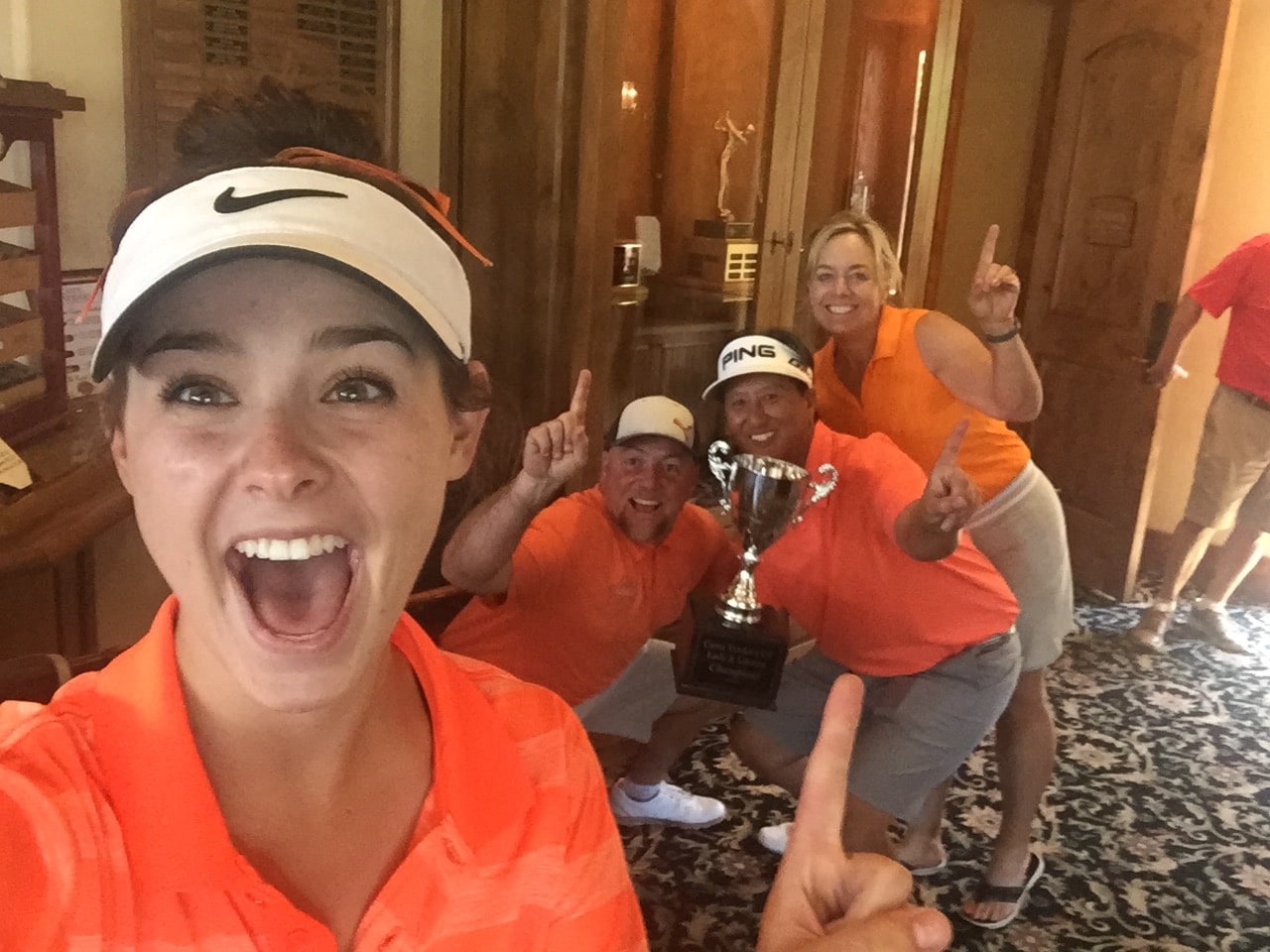 ACE on #4 92 yard hole in our annual "Lads and Lassie's" Tournament on 6/13/2015. Pictured here with my team Michelle (selfie photographer) Brad and Kwang with our trophy. It was a wonderful day to make an ace!!!