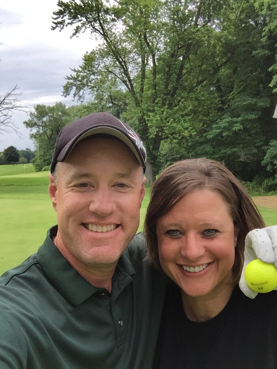 Amy and I have been dating but this was our first "golf" date. I spent a lot of time helping her as she has never been golfing before. I told her that it would be really cool if I get a hole in one here. I described the shot I was going to hit ~ hit it past the hole and let ti back up. I assumed it was going to back up to the front of the green, but it ran right in the hole!