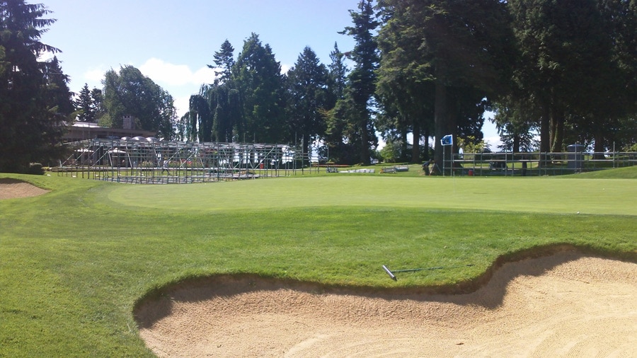 Blue skies today in Vancouver. Great day to start setting up the grandstands.