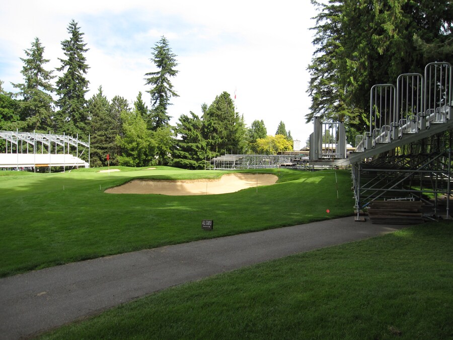 As promised, here is the progress on the grand stands surrounding #18.