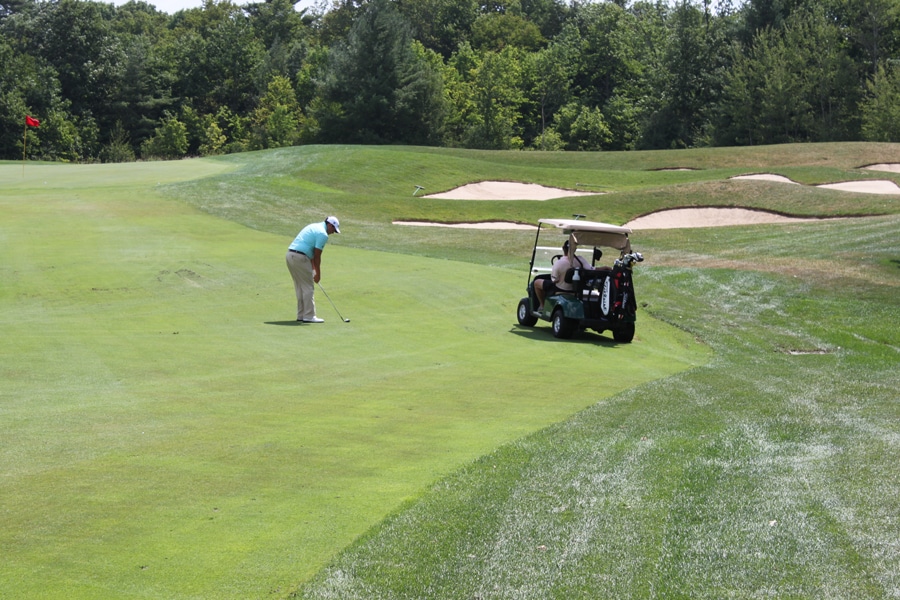 After a 310+ Yard drive, Scott has a little flip wedge into the green. Such a simple game!