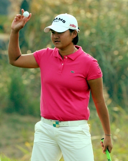 Yani holds aloft her Pro V1x to celebrate another sunk putt!