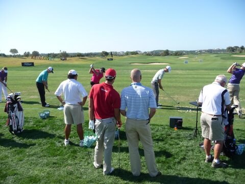 Fellow Titleist Ambassador Seve Benson (red shirt) checks out Scott's progress.