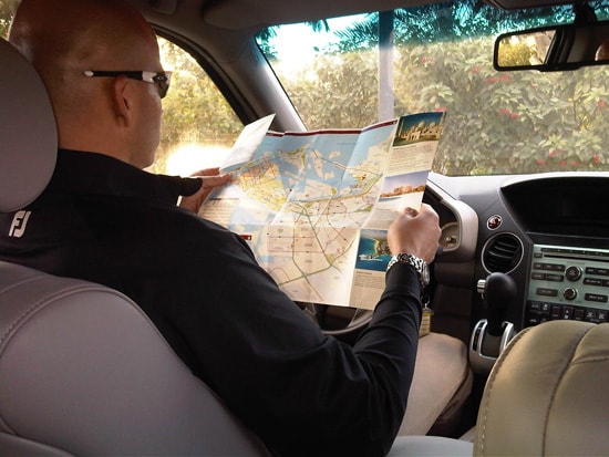 "Which way to the course?" asks tour tech Phil "Lucky" Dimmock! Could be a long week!