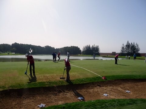 A look across the immaculate putting green and practice range at the stunning Royal course - not many ranges with a lake in the middle!