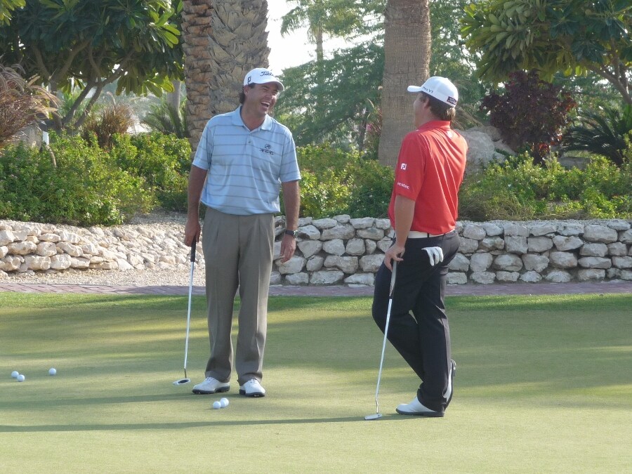 George shares a joke with fellow countryman and Pro V1x loyalist Keith Horne