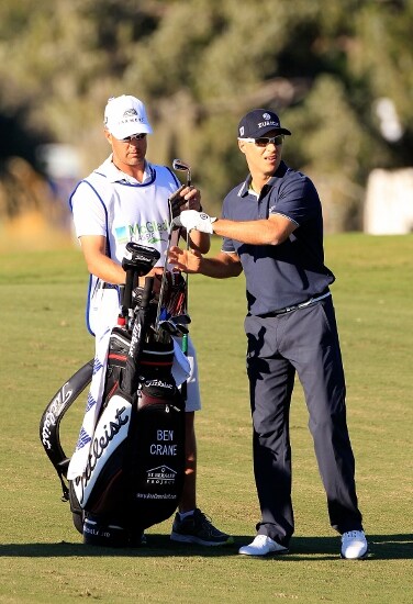 Crane consults with caddy.