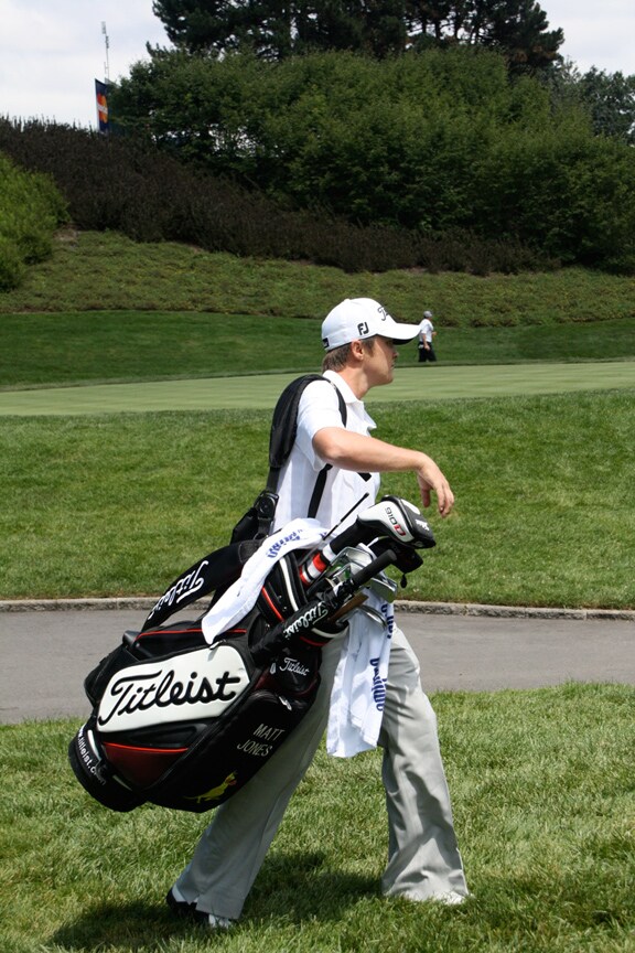 Titleist Brand Ambassador Matt Jones carrying his own luggage.