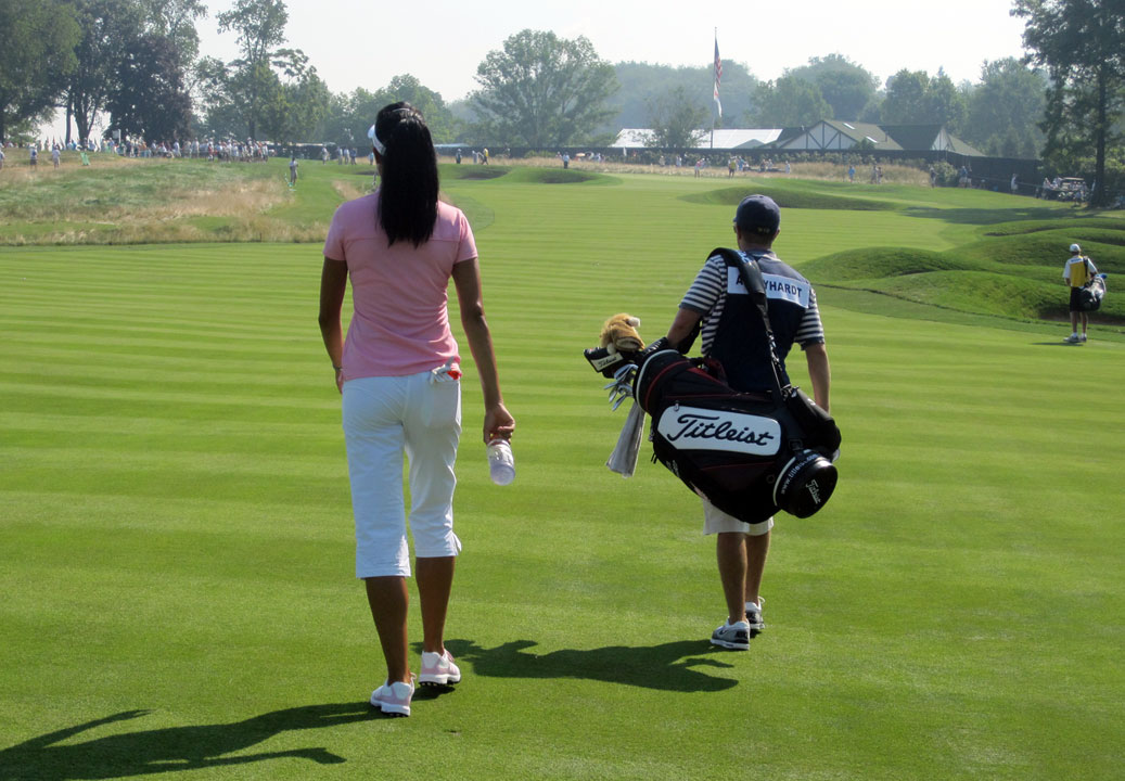 Shasta Averyhardt walks up one of Oakmont's fairways.