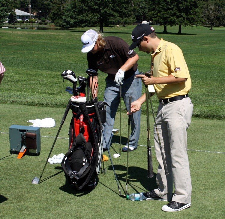 Vokey Tour Rep Aaron Dill with a special delivery for Titleist Brand Ambassador Charley Hoffman.