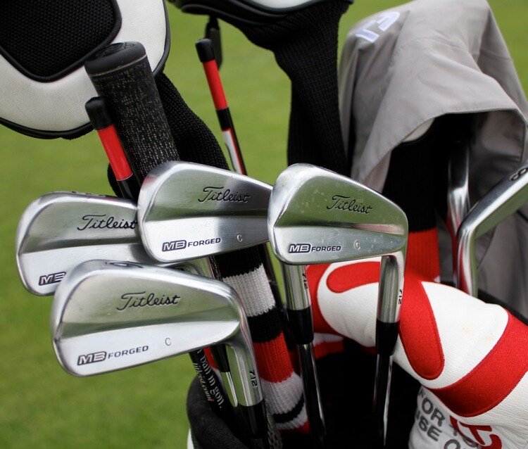 Check out these new Prototype Titleist MB (712 series) irons, custom-stamped with a simple "C," sitting on the range at Cog Hill. Who is the owner?