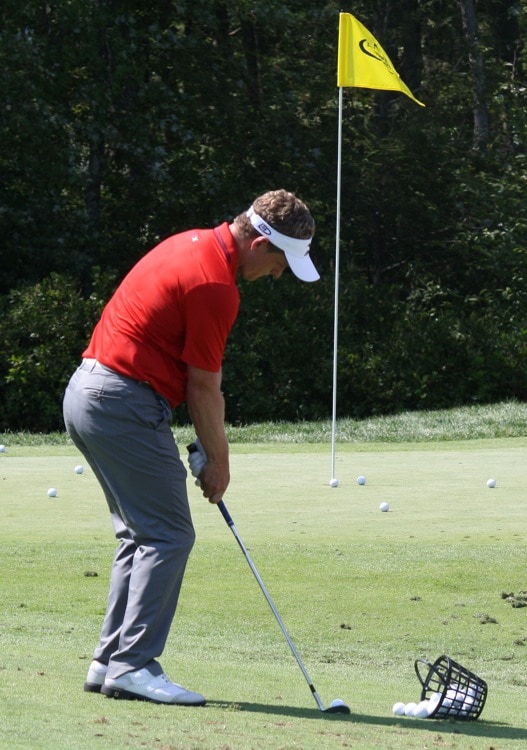 No surprise here: Pro V1x Luke Donald works on his world-renowned short game.
