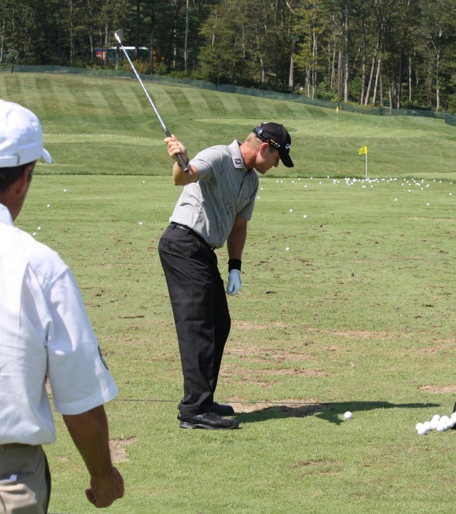 One-handed shots? Nope, just some stretching for Pro V1x loyalist Scott Verplank.