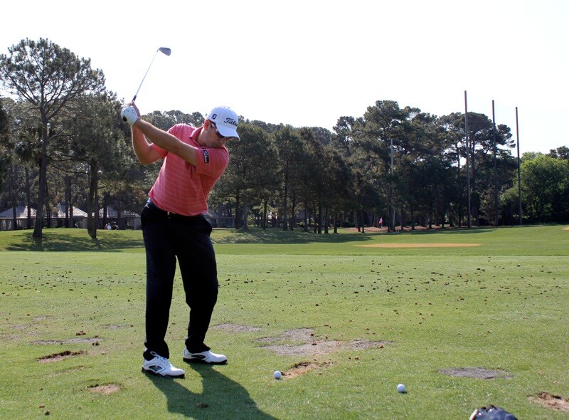 Titleist Brand Ambassador Ben Curtis puts in some work over on the Harbour Town range.