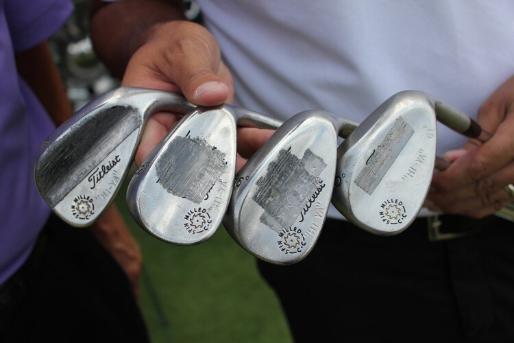 Take a close look at the custom stamping on Scott's Vokey wedges.
