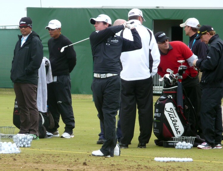 Rory warms up on the range with his Titleist MB irons.