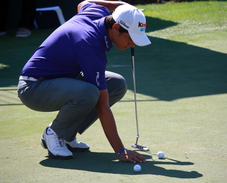 Titleist Brand Ambassador Matteo Manassero sets up a putting drill.