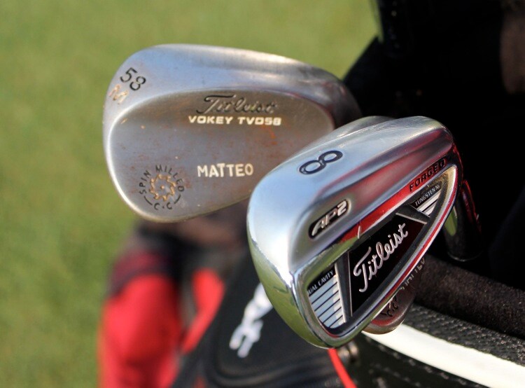 "MATTEO" marks the spot on his Titleist Vokey Design Spin Milled TVD58M wedge.