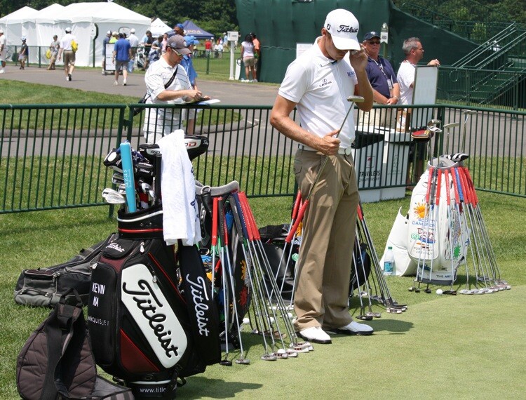 He checks out a couple Scotty Cameron putters while he's at it, too.