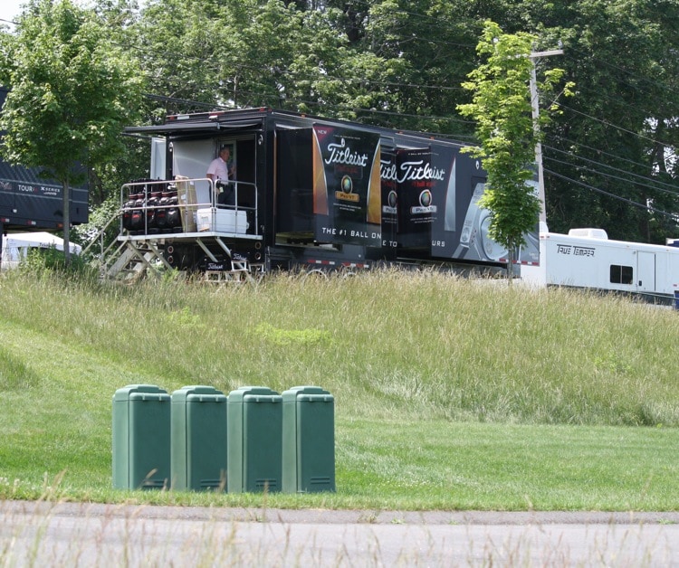 The Titleist Tour Van got a good parking spot this week at the Travelers Championship, perched just above the driving range.