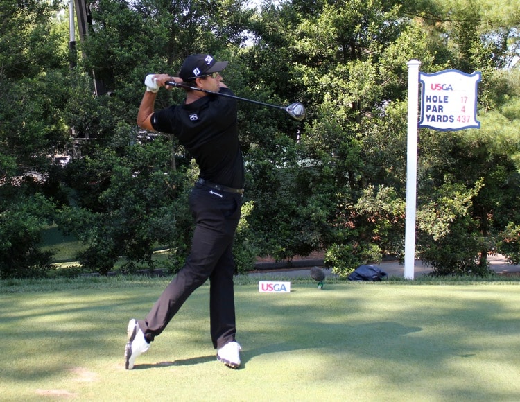Adam tees off with his Titleist 910Fd 15º 3-wood with Fujikura Rombax Pro95 shaft and the SureFit Tour hosel set at D•3 (+.75º more loft, +1.5º upright).
