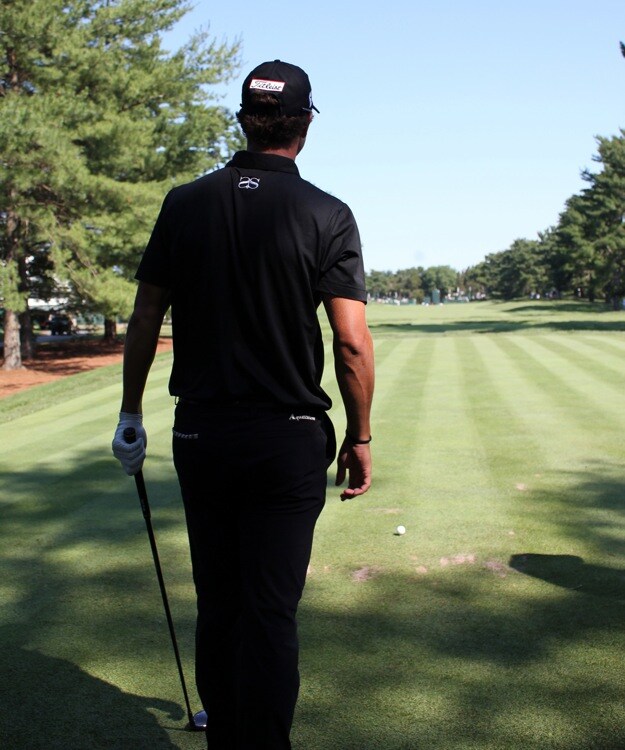 Titleist Brand Ambassador Adam Scott lines up a tee shot on Congressional's 17th tee.