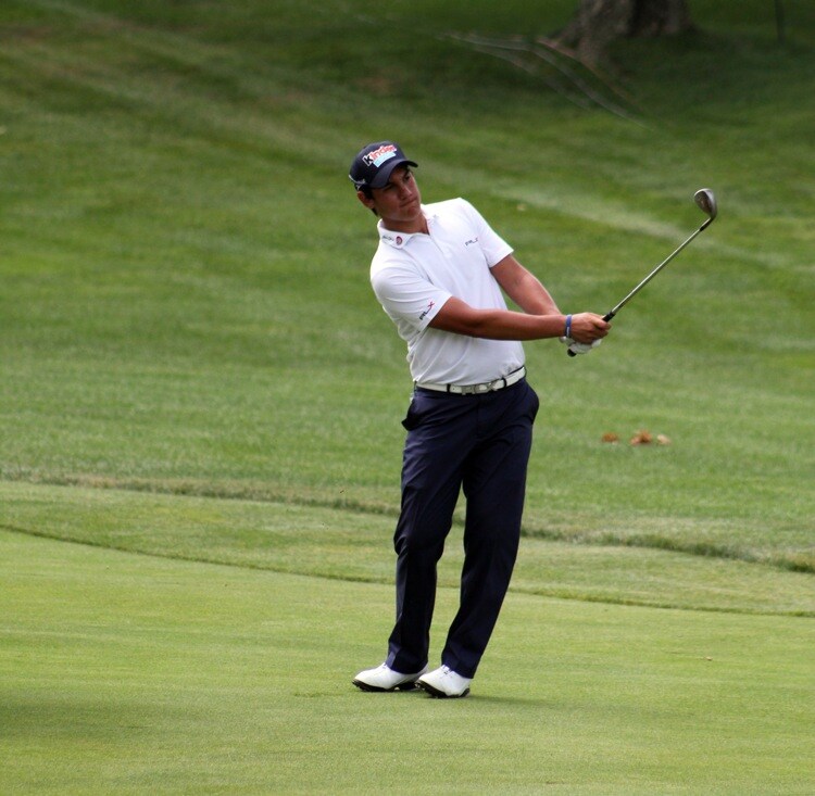 Titleist Brand Ambassador Matteo Manassero hits a wedge shot toward the end of his practice round.