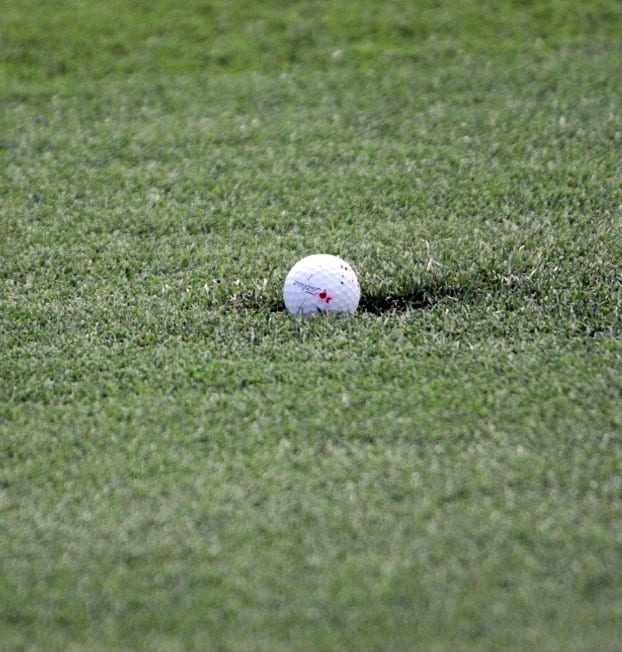 Gary's Pro V1x stopped in an unfortunate divot in the middle of the fairway.