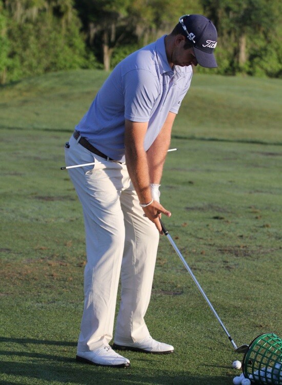 Bobby's working on a drill to keep his hands in front of his body. "For a big guy like me, I tend to let my hips get ahead of me," he says.