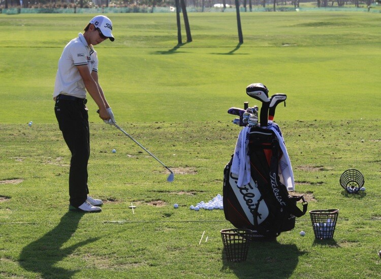 Titleist Brand Ambassador S.Y. Noh warms up for a late afternoon range session.