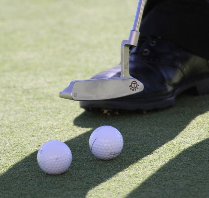 Bud putts with a Scotty Cameron Newport 2 Studio Select.