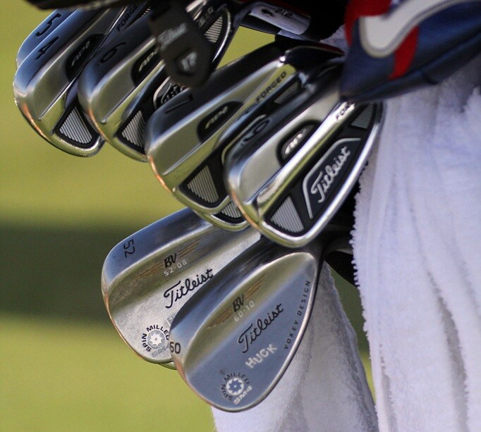 Hunter plays new Titleist AP2 (712 Series) irons and SM4 Vokey wedges. Why "HUCK?" Hunter's full name is Hunter Jefferson Huck Finn Haas.