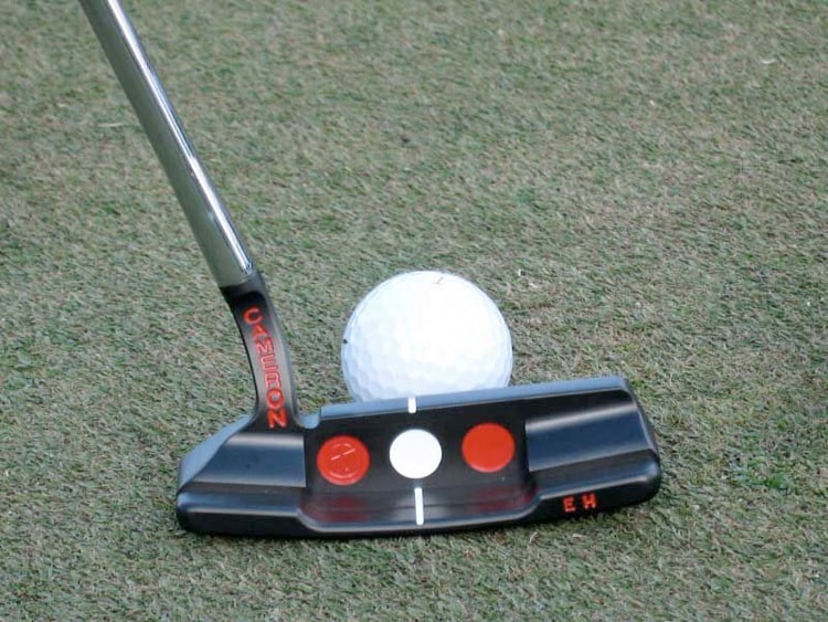 Here's a close-up of Graham's new Scotty Cameron Select 2.5 with a Tour-only custom paint job and "EH" stamping. (He's Canadian!)