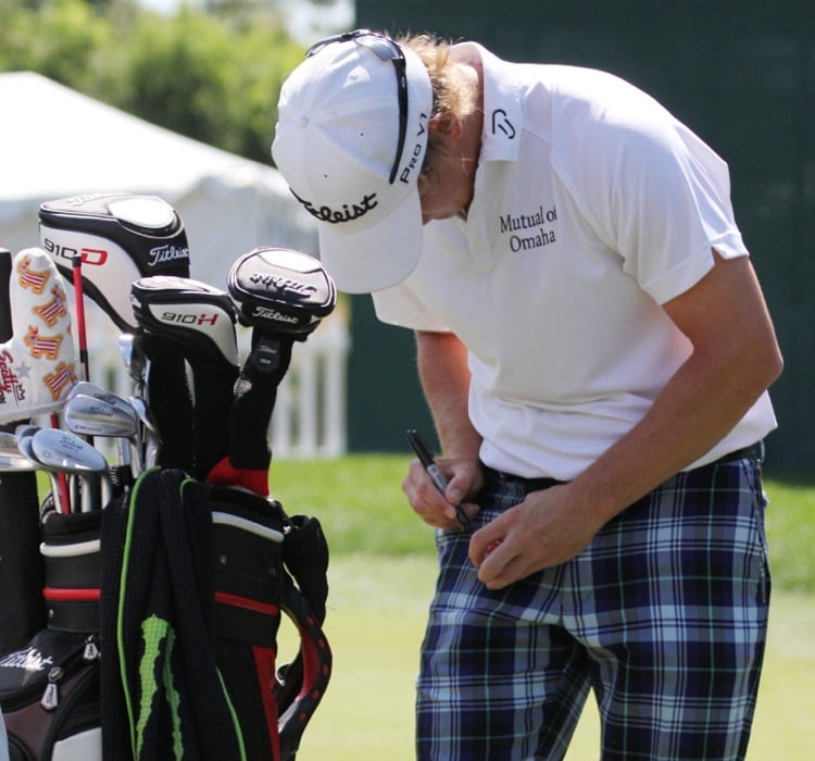 Titleist Brand Ambassador Bud Cauley marks his Titleist Pro V1x's.