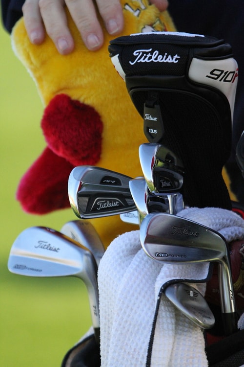 In the bag: 910D3 8.5º driver; 910F 13.5º fairway metal; AP2 (712 series) 3-5 irons; MB (712 series) 6-9 irons; Vokey Design Wedges 49º, 56º & 59º; and a Scotty Cameron Newport putter.